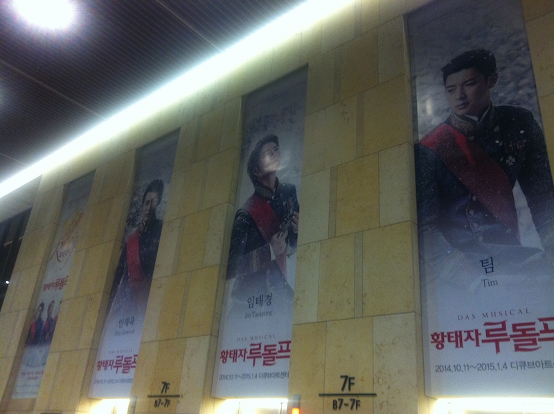 After the musical I was still happily prancing about in my imaginary snow swirls, so we ended up getting a little lost on our way out (particularly now that we were Adela-less). We ended up approaching the concierge to ask which way to the subway, and I began trying to form the sentence in Korean when he bluntly said “Are you looking for the subway station?” in English. Ha. And with an embarrassed thanks we headed in the direction and located the subway.